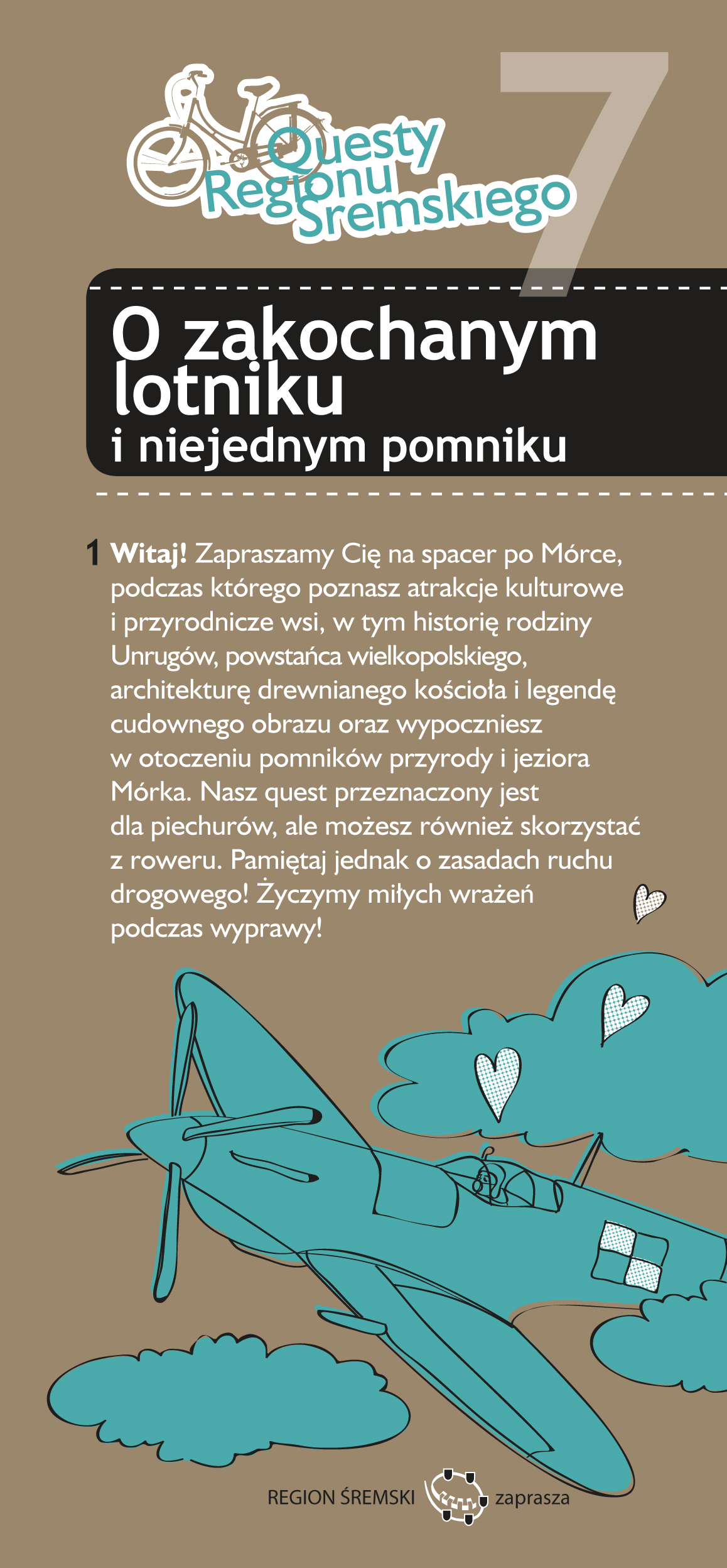 Z wielką przyjemnością prezentujemy quest nr 7 "O zakochanym lotniku i niejednym pomniku". A w nim głównie o miejscowościach Mórka i Mełpin. Będzie o miłości, lotnictwie, cudownym obrazie i kościele. Więcej nie zdradzimy.