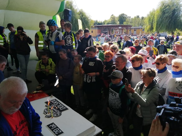 W miniony weekend obchodziliśmy 20-lecie imprezy „ROWEREM DO …”, która podobnie jak podczas jej inauguracji 20 lat temu, została zorganizowana w Dolsku. Na plażę miejską zjechało ok. 400 rowerzystów, w tym: dzieci i młodzież szkolna, zorganizowane grupy rowerowe i mniejsze grupy rodzinne. Każdy jechał do Dolska wybranymi przez siebie szlakami rowerowymi. Po krótkim powitaniu uczestników przez Adama Lewandowskiego – Przewodniczącego Zarządu Unii i gospodarza terenu Panią Barbarę Wierzbińską – Burmistrz Miasta i Gminy Dolsk, nastąpiło wspólne świętowanie. Najpierw był tort, wspólnie pokrojony przez partnerów imprezy, którzy są z nami od wielu lat i pomagają w jej organizacji: firma Green Bike Poland ze Śremu, Śremska Grupa Nieustannych Optymistów „KRÓWKA MAŁA”, Klub Krótkofalowców SP 3PKC LAMBDA ze Śremu. Głównym partnerem był Miejsko Gminny Ośrodek Sportu i Rekreacji w Dolsku, a wspierali naszą imprezę również (i to od wielu lat!!!): Straż Miejska w Śremie oraz Komenda Powiatowa Policji w Śremie.