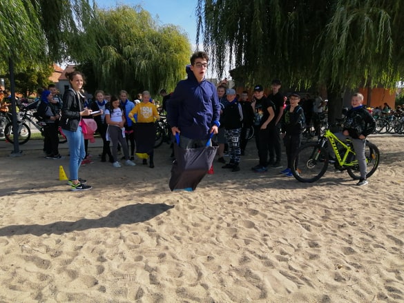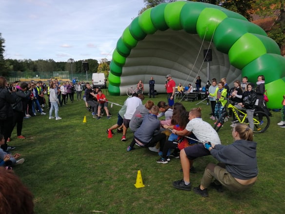 Po torcie i posileniu się grochówką, uczestnicy brali udział w konkurencjach sprawnościowych (slalom rowerowy, bieg w workach, bieg z kołem ratunkowym oraz bieg z babką – wykonanie babki z piasku). Ale największe emocje dostarczyła konkurencja grupowa „przeciąganie liny” przez zgłoszone grupy szkół podstawowych. Zwycięzcom wszystkich konkurencji zostały wręczone nagrody rzeczowe i upominki.