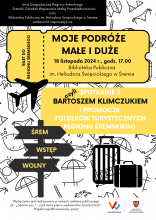 Już 18 listopada br. o godz. 17.00 w Bibliotece Publicznej im. Heliodora Święcickiego w Śremie odbędzie się spotkanie promujące nasze nowe foldery turystyczne z serii "SPACER PO...". Ich autorem jest Śremianin i podróżnik - BARTOSZ KLIMCZUK, który opowie o swoich podróżach po regionie śremskim i tych dużych - po całym świecie.